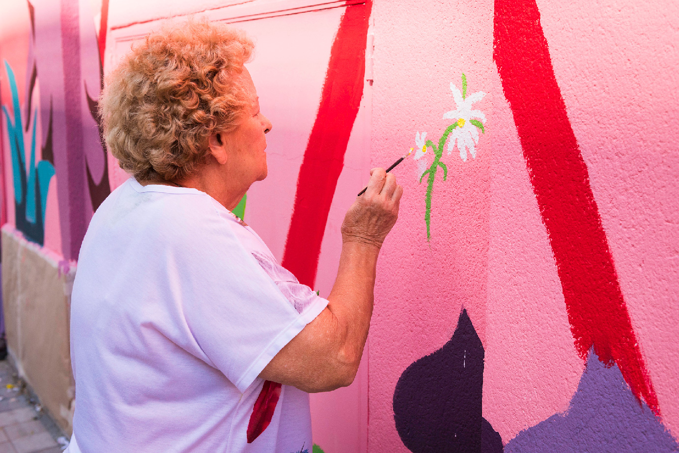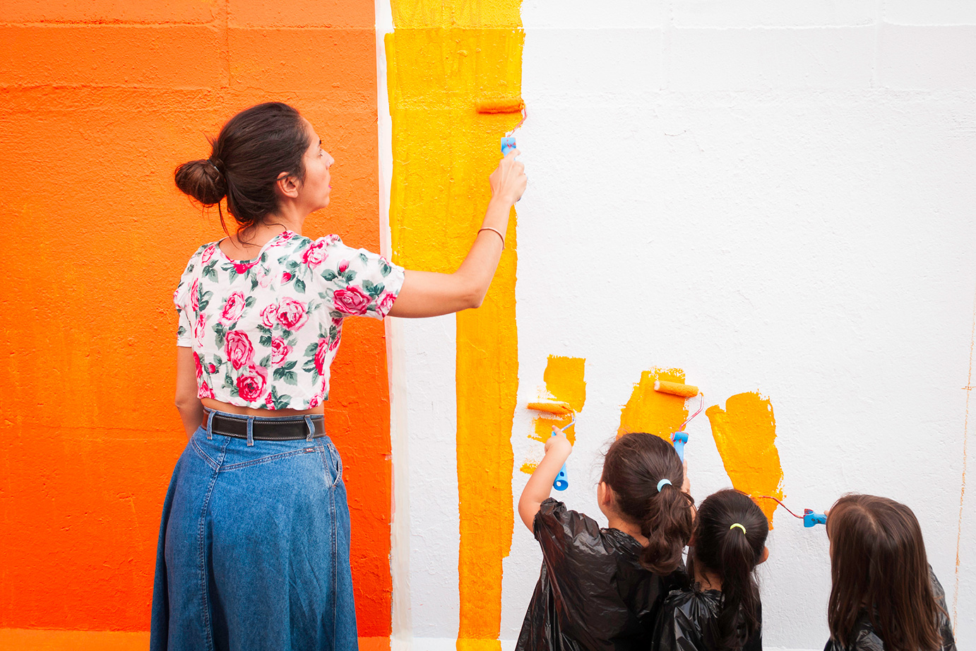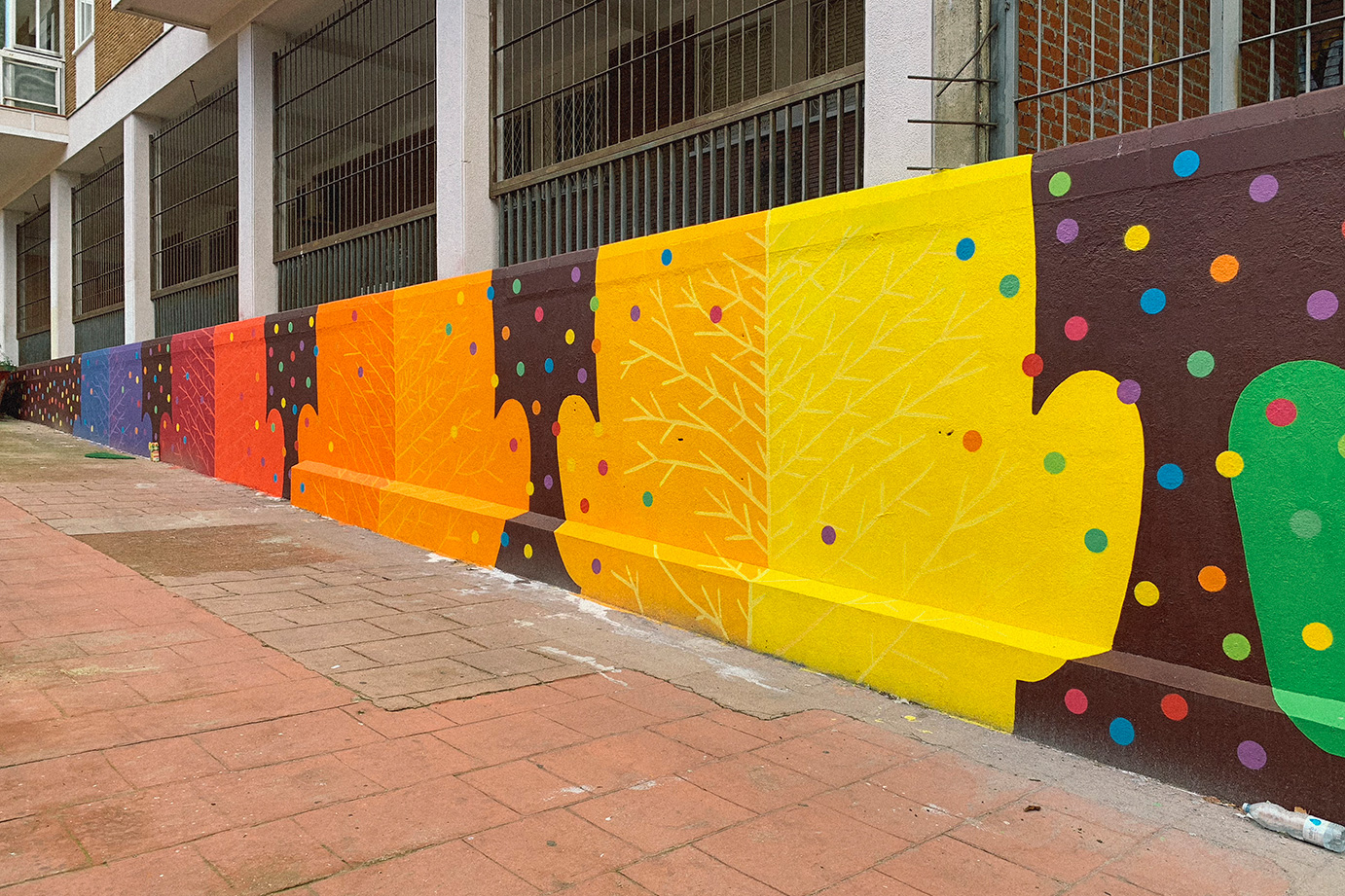 Compartiendo Muros tiene como objetivo principal que la ciudadanía identifique el espacio público como algo suyo, participe en su embellecimiento y se responsabilice de su conservación y mantenimiento a través de acciones artísticas abiertas a la participación del tejido creativo radicado en el distrito.