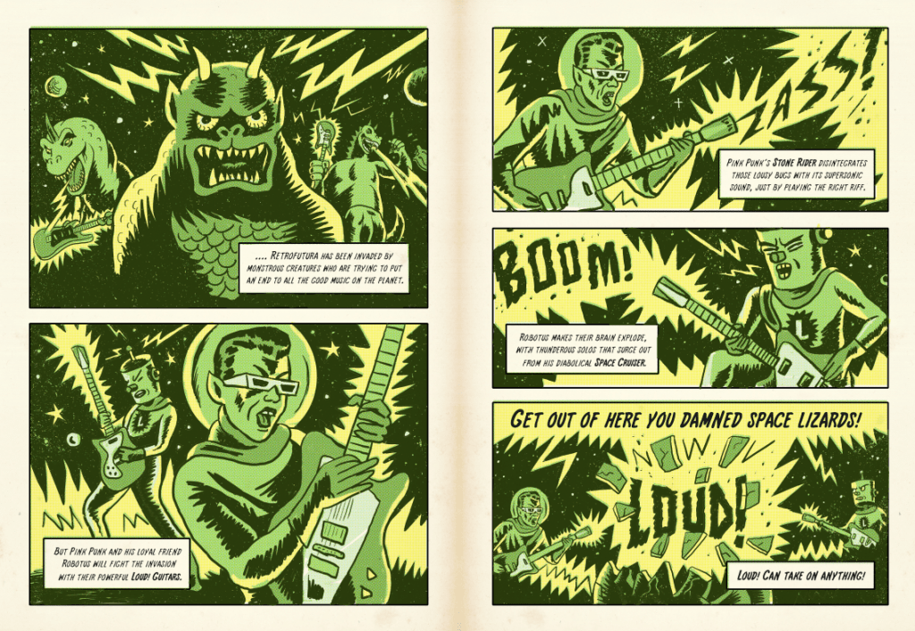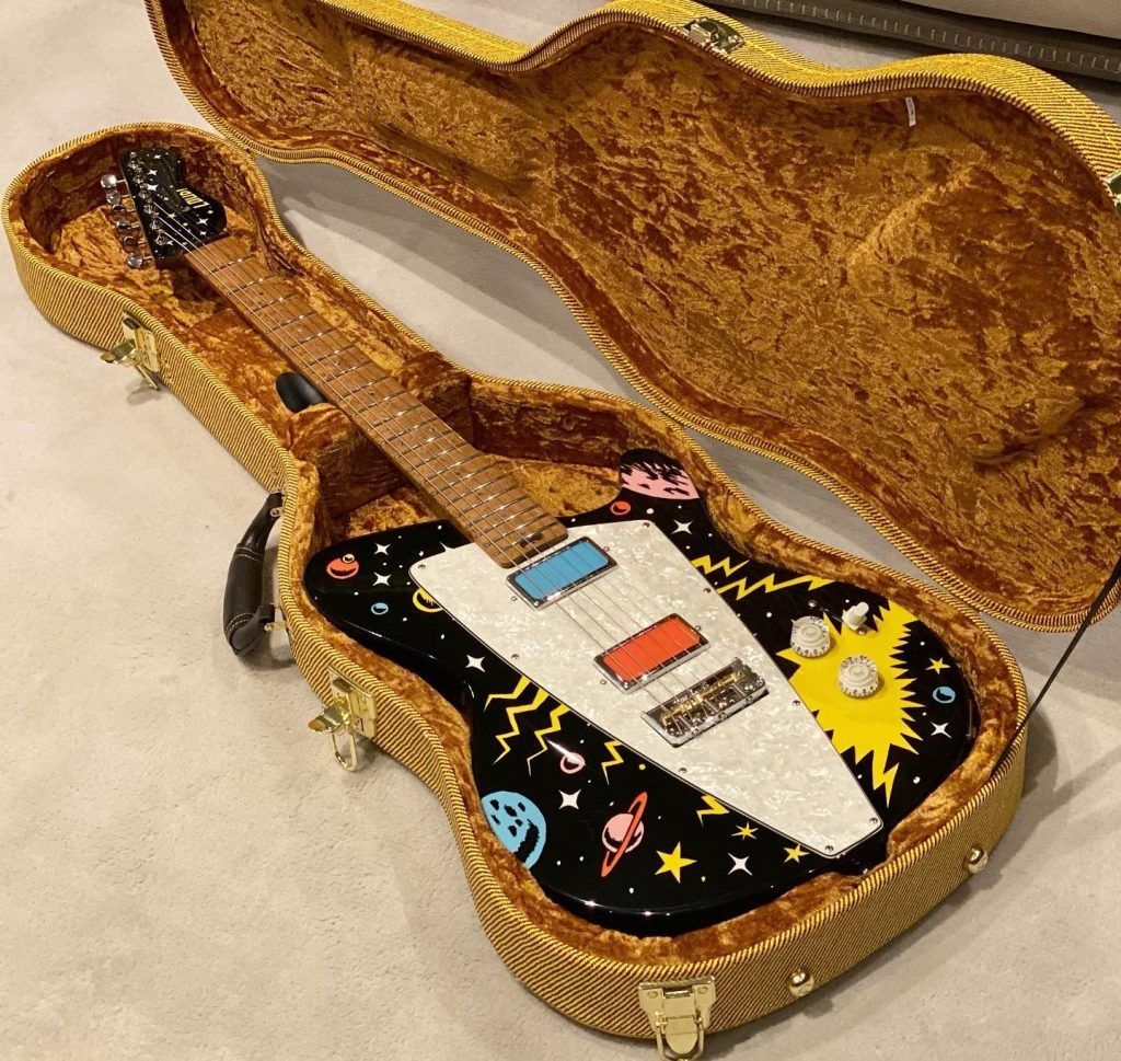 Color, espacio y música se fusionan en esta guitarra hecha a mano con madera premium. A una estética cósmica retro futurista inspirada en los años 50 y 60 – época dorada de la guitarra eléctrica – con una visión optimista (y algo ingenua) acerca del futuro; se suma una forma retro y cómoda, que invita a tocar, con acabados y componentes de alta calidad. Tiene un tono único vintage que te permitirán llevar su estruendosa claridad y ‘sustain’ por el universo.